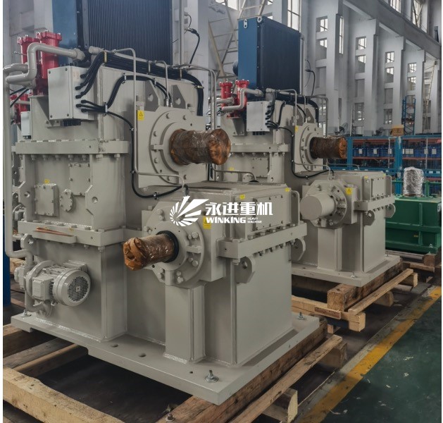 CQYLK550: 應用于機車試驗臺,功率2000kw, 轉速2000rpm,齒輪箱采用換擋與錐齒同步一體結構、立式傳動結構,大大縮小了客戶整體布局的空間尺寸。同時為客戶降低了試驗臺整體造價。傳統機車試驗臺均為換擋箱加同步箱布置,該類型產品的開發,使類似產品在后續的市場中具有極強的競爭優勢。